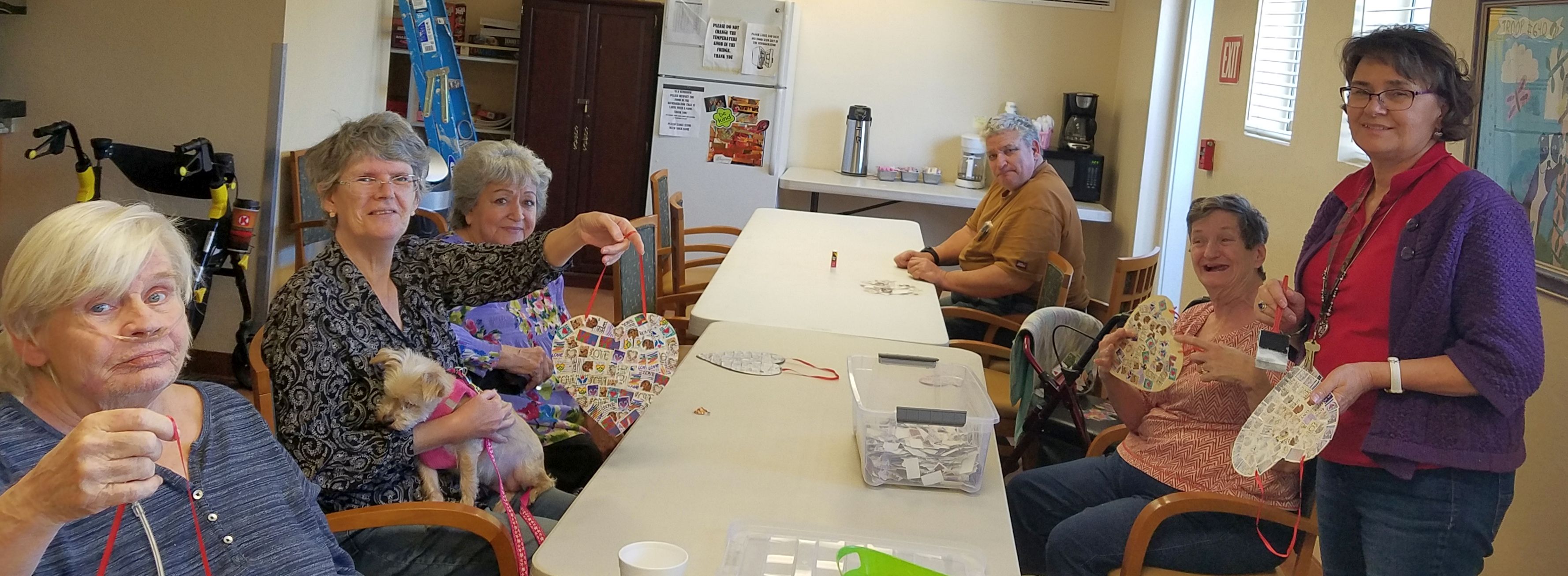 As the Outreach Coordinator for the Postal History Foundation, Lisa Dembowski has facilitated a monthly craft group using historic postage stamps for 13 years. Lisa brings stamps from all over the world that celebrate flowers, birds, animals, scientists, and world leaders. As Valentine’s Day approaches she created a fun-filled afternoon with the Elders by creating valentines with years of LOVE stamps.
