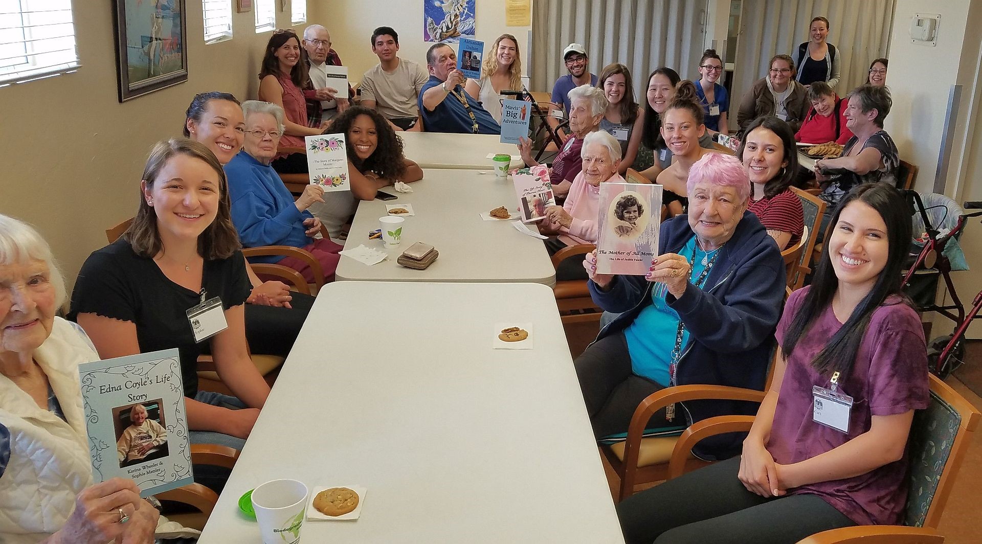 St. Luke’s Elders, pictured above with UA graduate students in psychology, were presented with beautifully bound books that included pictures and special stories shared by our Elders and written up by the students as part of a UA project on older adults.