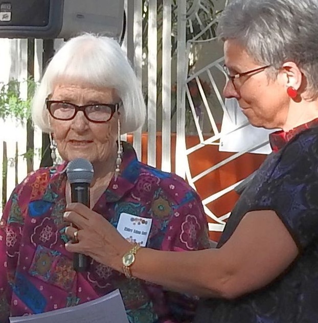 Edna (pictured at top with CEO L’Don Sawyer) had a featured speaking role. She shared her recollections of the nearly quarter century she has lived at St. Luke’s, and noted how grateful she is to reside in a community of such beauty.