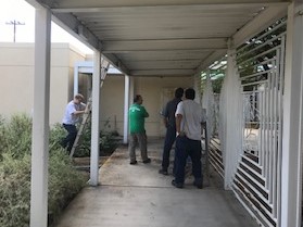 A brief tour of St. Luke’s quickly revealed the need for rejuvenation of the iron work and steel structures in front of St. Luke’s, including in the East Courtyard where the kick-off event was held. Godlewski gathered several of his members including AB LeCocq Construction and the Home Builders Institute (HBI), which brought in a group of students to do the prepping. Dunn-Edwards donated all of the paint required. (Pictured above are John Gallagher of HBI in green and Octavio Mendivils of AB LeCocq Construction).